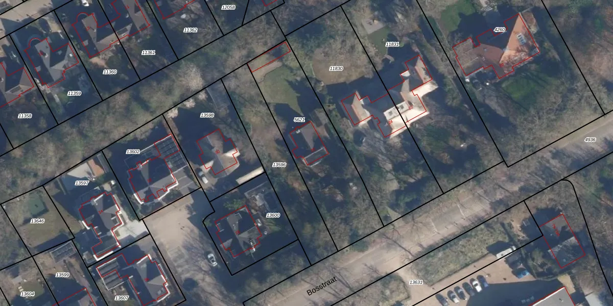 Het perceel waarop Bosstraat 26 staat heeft een oppervlakte van 1125 m². Dit is een zeer groot perceel. De perceeloppervlakte wordt geregistreerd door het Kadaster. Gedetailleerde informatie over de maten van dit perceel kunt u vinden in het rapport Kadastrale kaart met maatvoering van Bosstraat 26.