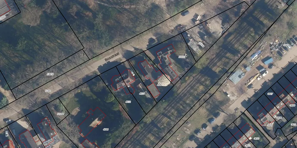 Bosstraat 5 is gelegen op kadastraal perceel SOE00G4082. Deze kadastrale aanduiding is uniek en wordt gebruikt door het Kadaster om eigendomsrechten en andere zakelijke rechten vast te leggen. Het perceel maakt onderdeel uit van de kadastrale gemeente Soest.