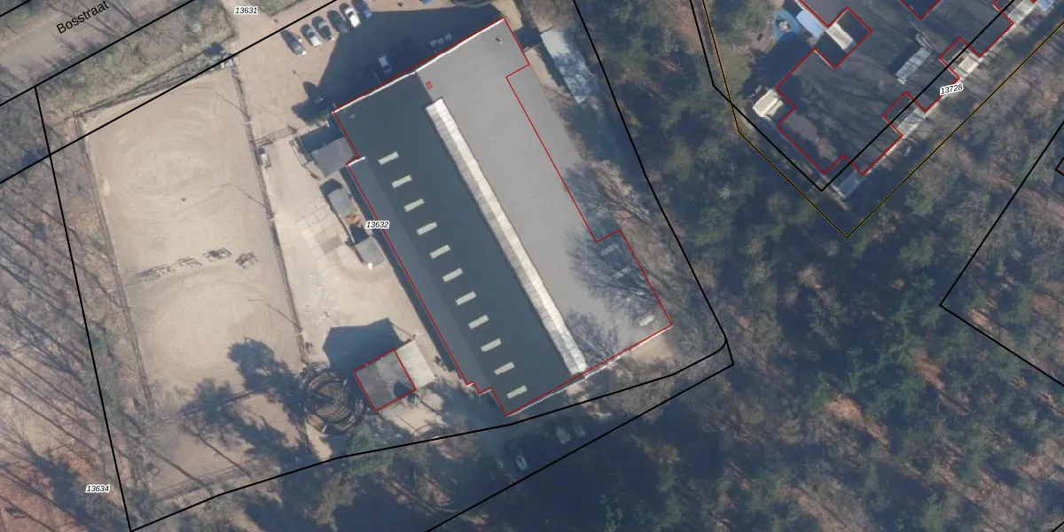Het perceel waarop Bosstraat 81 staat heeft een oppervlakte van 9145 m². Dit is een zeer groot perceel. De perceeloppervlakte wordt geregistreerd door het Kadaster. Gedetailleerde informatie over de maten van dit perceel kunt u vinden in het rapport Kadastrale kaart met maatvoering van Bosstraat 81.