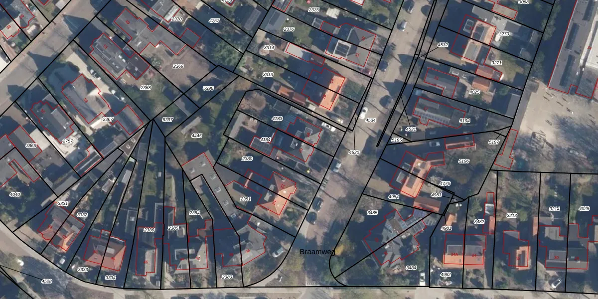 Braamweg 20 is gelegen op kadastraal perceel SOE00D4184. Deze kadastrale aanduiding is uniek en wordt gebruikt door het Kadaster om eigendomsrechten en andere zakelijke rechten vast te leggen. Het perceel maakt onderdeel uit van de kadastrale gemeente Soest.