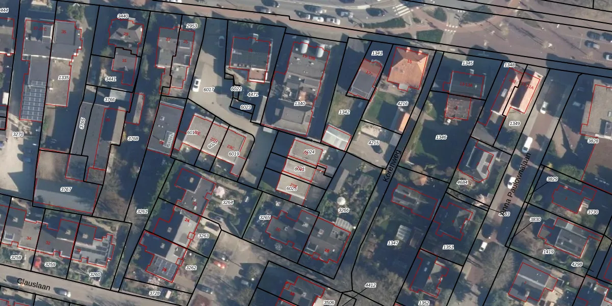 Gebruik de zoekbalk of klik op een perceel voor informatie over de adressen binnen dit perceel.