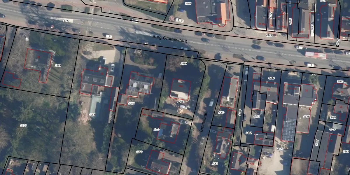 Gebruik de zoekbalk of klik op een perceel voor informatie over de adressen binnen dit perceel.