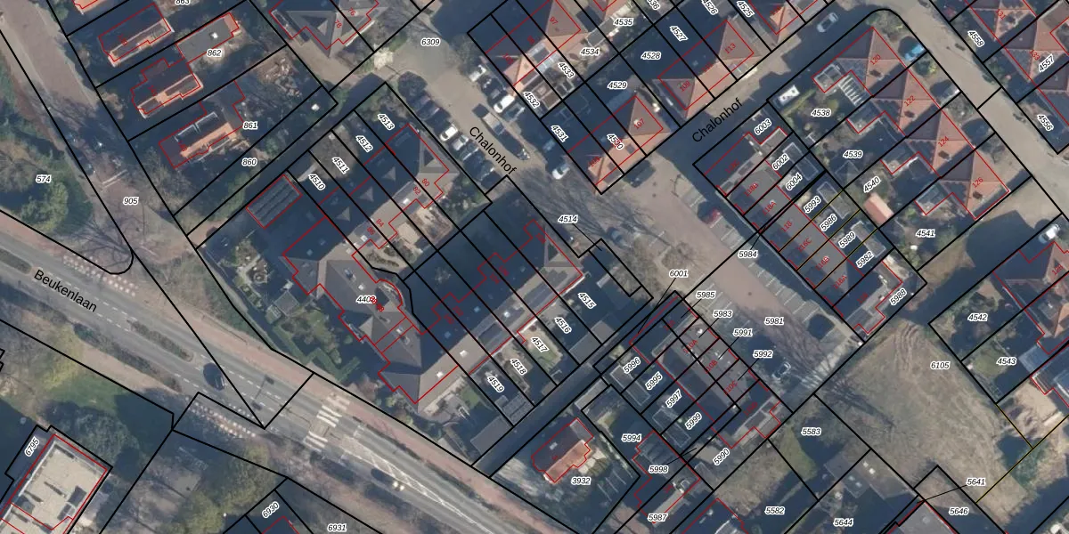 Het perceel waarop Chalonhof 108 staat heeft een oppervlakte van 309 m². Dit is een groot perceel. De perceeloppervlakte wordt geregistreerd door het Kadaster. Gedetailleerde informatie over de maten van dit perceel kunt u vinden in het rapport Kadastrale kaart met maatvoering van Chalonhof 108.