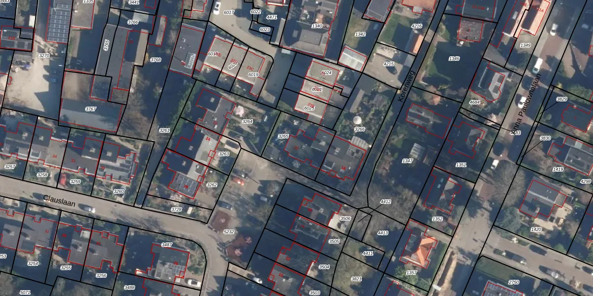 Het perceel waarop Clauslaan 20 staat heeft een oppervlakte van 340 m². Dit is een groot perceel. De perceeloppervlakte wordt geregistreerd door het Kadaster. Gedetailleerde informatie over de maten van dit perceel kunt u vinden in het rapport Kadastrale kaart met maatvoering van Clauslaan 20.