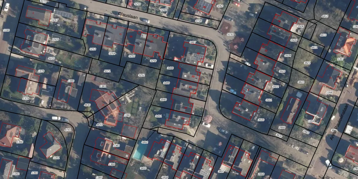 Clauslaan 21 is gelegen op kadastraal perceel SOE00K3489. Deze kadastrale aanduiding is uniek en wordt gebruikt door het Kadaster om eigendomsrechten en andere zakelijke rechten vast te leggen. Het perceel maakt onderdeel uit van de kadastrale gemeente Soest.