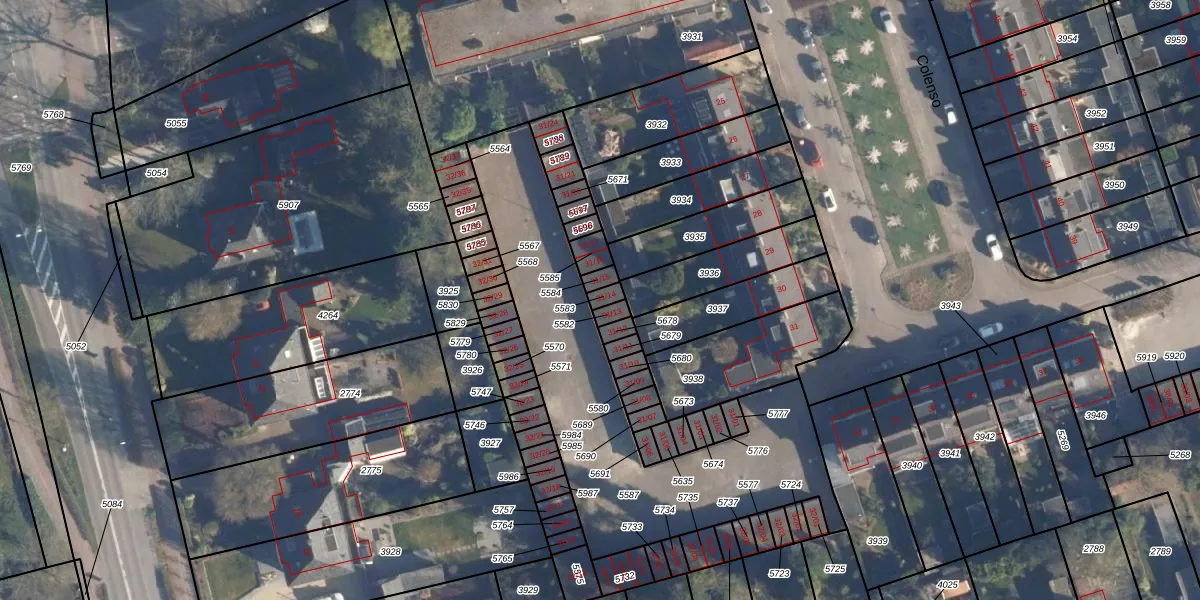 Gebruik de zoekbalk of klik op een perceel voor informatie over de adressen binnen dit perceel.