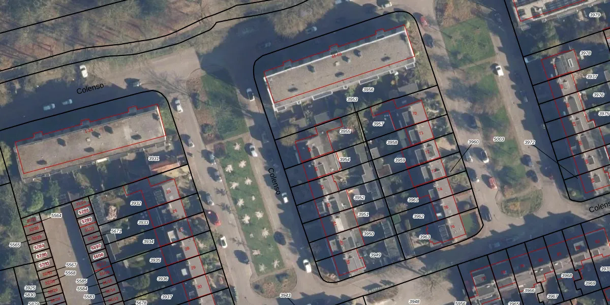 Colenso 45 is gelegen op kadastraal perceel SOE00A3955. Deze kadastrale aanduiding is uniek en wordt gebruikt door het Kadaster om eigendomsrechten en andere zakelijke rechten vast te leggen. Het perceel maakt onderdeel uit van de kadastrale gemeente Soest.