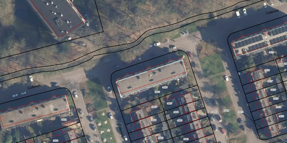 Colenso 54 is gelegen op kadastraal perceel SOE00A3956. Deze kadastrale aanduiding is uniek en wordt gebruikt door het Kadaster om eigendomsrechten en andere zakelijke rechten vast te leggen. Het perceel maakt onderdeel uit van de kadastrale gemeente Soest.