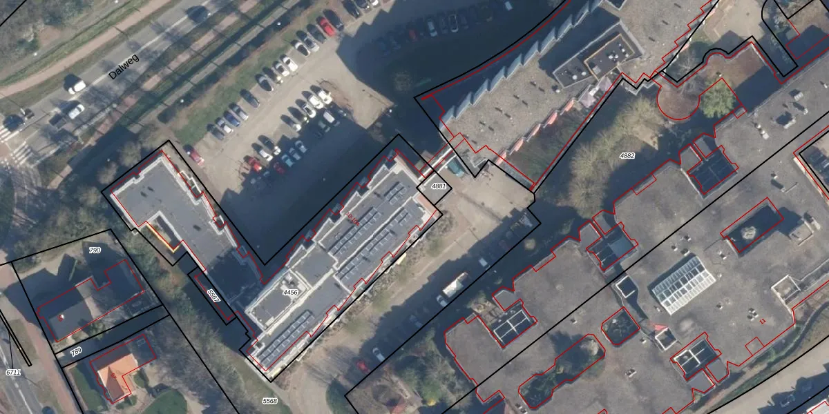 Het perceel waarop Dalplein 86 staat heeft een oppervlakte van 1920 m². Dit is een zeer groot perceel. De perceeloppervlakte wordt geregistreerd door het Kadaster. Gedetailleerde informatie over de maten van dit perceel kunt u vinden in het rapport Kadastrale kaart met maatvoering van Dalplein 86.