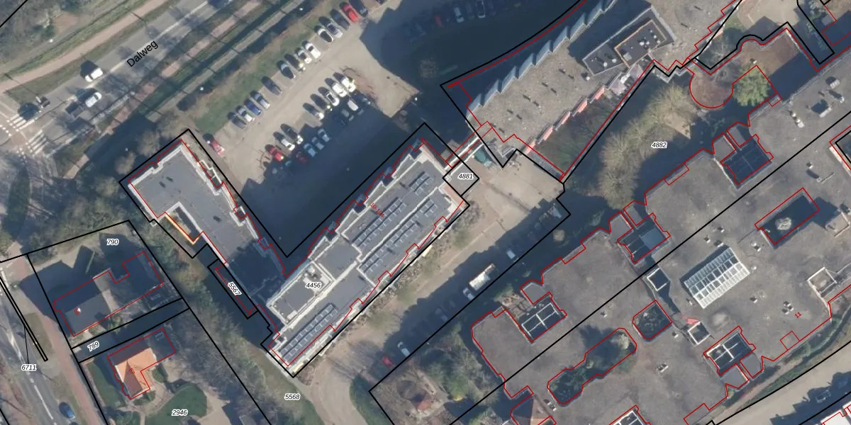 Het perceel waarop Dalplein 88 staat heeft een oppervlakte van 1920 m². Dit is een zeer groot perceel. De perceeloppervlakte wordt geregistreerd door het Kadaster. Gedetailleerde informatie over de maten van dit perceel kunt u vinden in het rapport Kadastrale kaart met maatvoering van Dalplein 88.
