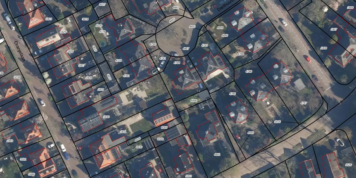 Het perceel waarop Darthuizen 6 staat heeft een oppervlakte van 430 m². Dit is een groot perceel. De perceeloppervlakte wordt geregistreerd door het Kadaster. Gedetailleerde informatie over de maten van dit perceel kunt u vinden in het rapport Kadastrale kaart met maatvoering van Darthuizen 6.