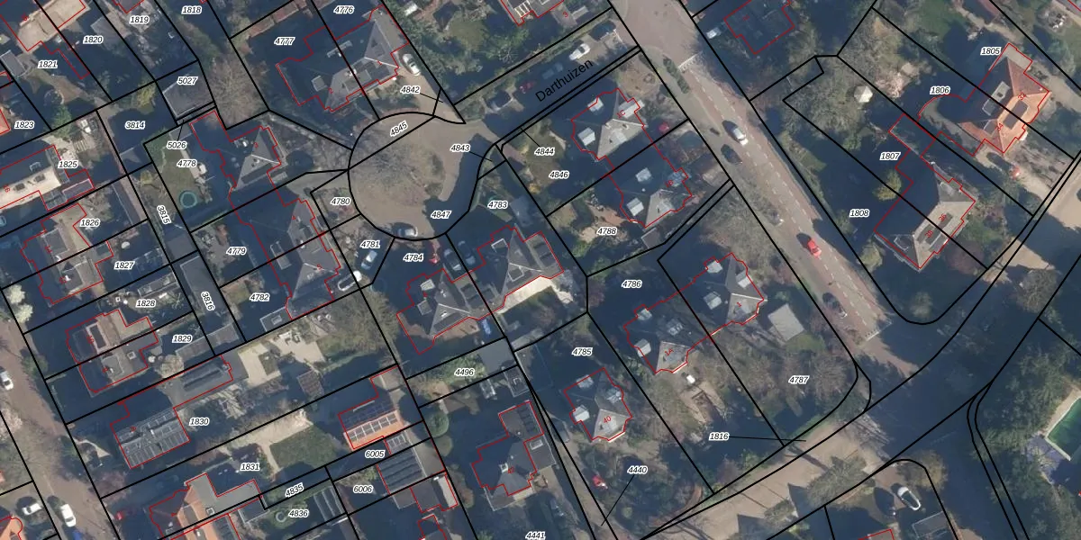 Het perceel waarop Darthuizen 7 staat heeft een oppervlakte van 510 m². Dit is een groot perceel. De perceeloppervlakte wordt geregistreerd door het Kadaster. Gedetailleerde informatie over de maten van dit perceel kunt u vinden in het rapport Kadastrale kaart met maatvoering van Darthuizen 7.