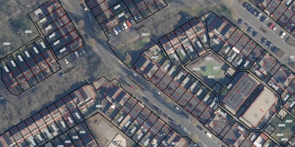 Di Lassostraat 108 is gelegen op kadastraal perceel SOE00G12147. Deze kadastrale aanduiding is uniek en wordt gebruikt door het Kadaster om eigendomsrechten en andere zakelijke rechten vast te leggen. Het perceel maakt onderdeel uit van de kadastrale gemeente Soest.