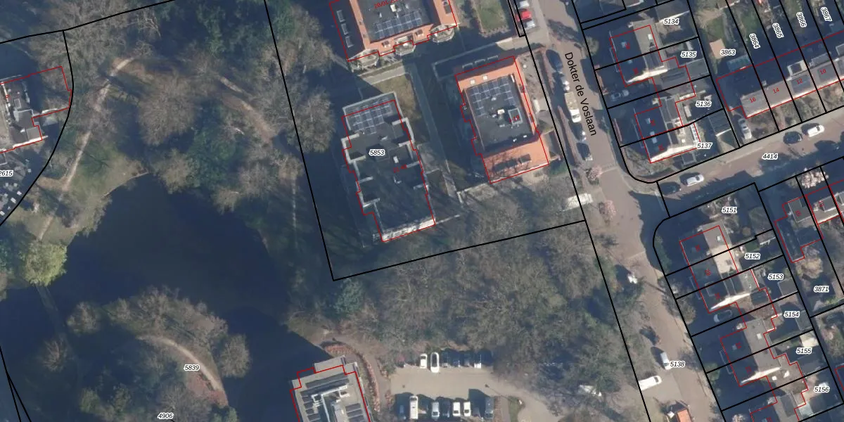 Dokter de Voslaan 21 is gelegen op kadastraal perceel SOE00A5853. Deze kadastrale aanduiding is uniek en wordt gebruikt door het Kadaster om eigendomsrechten en andere zakelijke rechten vast te leggen. Het perceel maakt onderdeel uit van de kadastrale gemeente Soest.