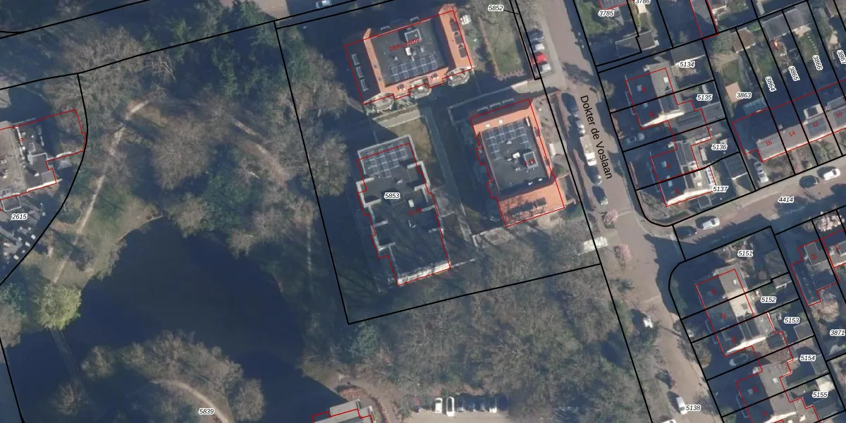 Dokter de Voslaan 23 is gelegen op kadastraal perceel SOE00A5853. Deze kadastrale aanduiding is uniek en wordt gebruikt door het Kadaster om eigendomsrechten en andere zakelijke rechten vast te leggen. Het perceel maakt onderdeel uit van de kadastrale gemeente Soest.
