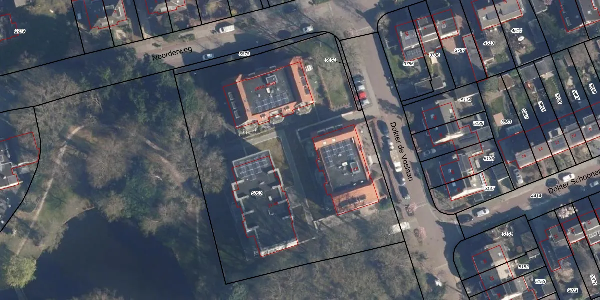 Het perceel waarop Dokter de Voslaan 3-01 staat heeft een oppervlakte van 4263 m². Dit is een zeer groot perceel. De perceeloppervlakte wordt geregistreerd door het Kadaster. Gedetailleerde informatie over de maten van dit perceel kunt u vinden in het rapport Kadastrale kaart met maatvoering van Dokter de Voslaan 3-01.