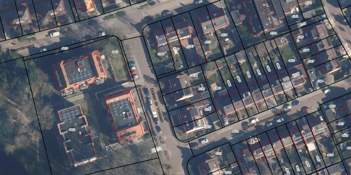 Dokter de Voslaan 38 is gelegen op kadastraal perceel SOE00A5134. Deze kadastrale aanduiding is uniek en wordt gebruikt door het Kadaster om eigendomsrechten en andere zakelijke rechten vast te leggen. Het perceel maakt onderdeel uit van de kadastrale gemeente Soest.