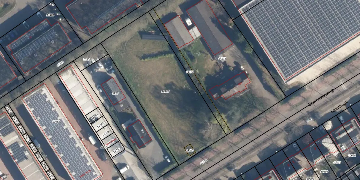 Het perceel waarop Dorresteinweg 68-16 staat heeft een oppervlakte van 2530 m². Dit is een zeer groot perceel. De perceeloppervlakte wordt geregistreerd door het Kadaster. Gedetailleerde informatie over de maten van dit perceel kunt u vinden in het rapport Kadastrale kaart met maatvoering van Dorresteinweg 68-16.