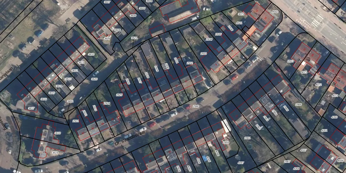 Dr. s'Jacobstraat 14 is gelegen op kadastraal perceel SOE00D2930. Deze kadastrale aanduiding is uniek en wordt gebruikt door het Kadaster om eigendomsrechten en andere zakelijke rechten vast te leggen. Het perceel maakt onderdeel uit van de kadastrale gemeente Soest.