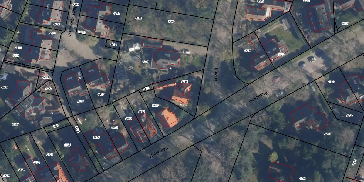 Het perceel waarop Duinweg 38 staat heeft een oppervlakte van 404 m². Dit is een groot perceel. De perceeloppervlakte wordt geregistreerd door het Kadaster. Gedetailleerde informatie over de maten van dit perceel kunt u vinden in het rapport Kadastrale kaart met maatvoering van Duinweg 38.