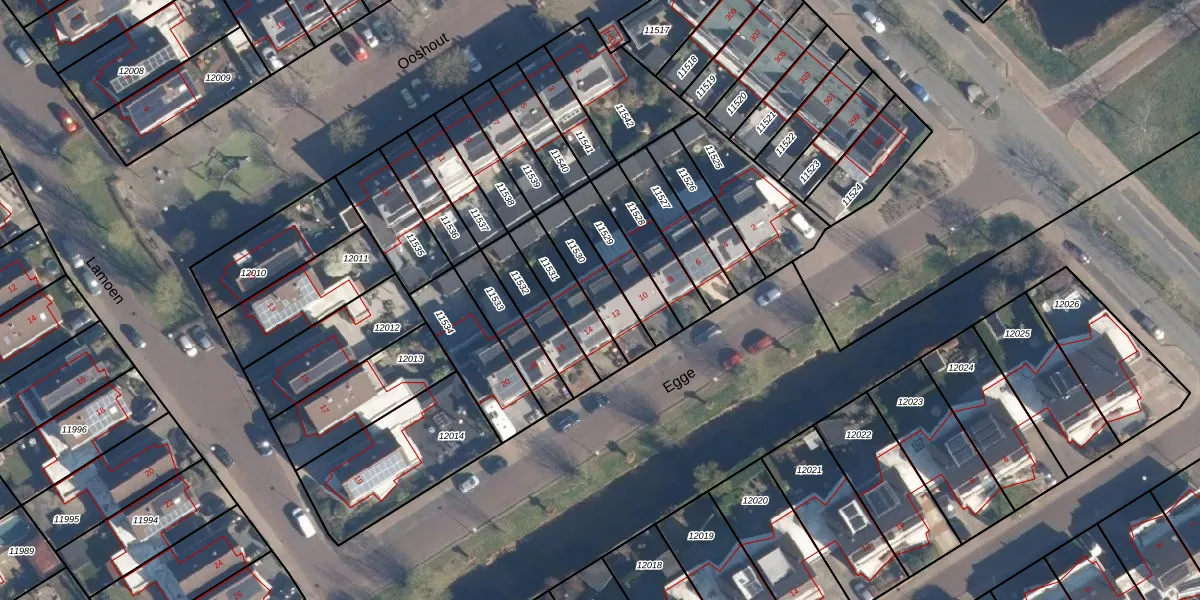 Het perceel waarop Egge 12 staat heeft een oppervlakte van 158 m². Dit is een middelgroot perceel. De perceeloppervlakte wordt geregistreerd door het Kadaster. Gedetailleerde informatie over de maten van dit perceel kunt u vinden in het rapport Kadastrale kaart met maatvoering van Egge 12.