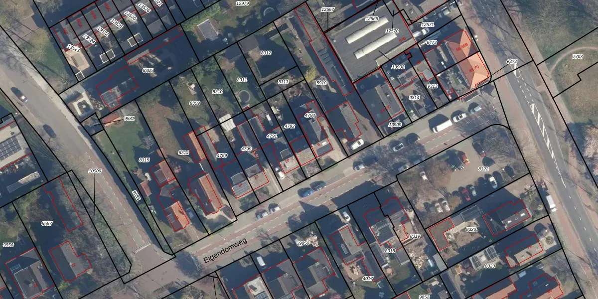 Eigendomweg 8 is gelegen op kadastraal perceel SOE00G4792. Deze kadastrale aanduiding is uniek en wordt gebruikt door het Kadaster om eigendomsrechten en andere zakelijke rechten vast te leggen. Het perceel maakt onderdeel uit van de kadastrale gemeente Soest.