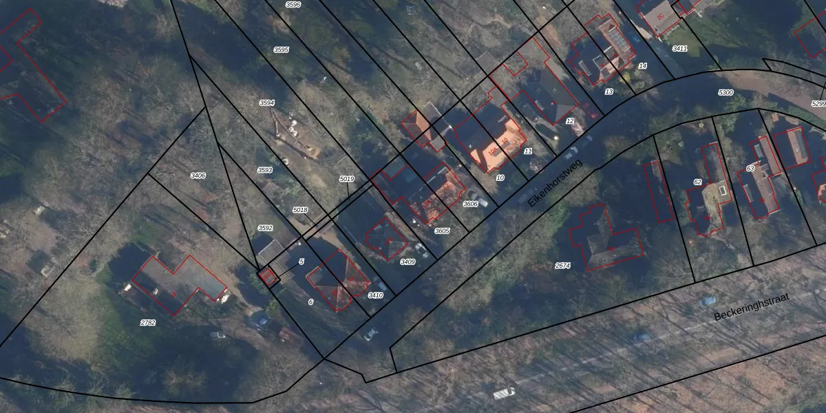 Eikenhorstweg 12-A is gelegen op kadastraal perceel SOE00K3605. Deze kadastrale aanduiding is uniek en wordt gebruikt door het Kadaster om eigendomsrechten en andere zakelijke rechten vast te leggen. Het perceel maakt onderdeel uit van de kadastrale gemeente Soest.
