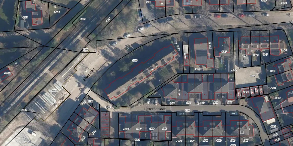 Het perceel waarop Eikenlaan 51 staat heeft een oppervlakte van 1775 m². Dit is een zeer groot perceel. De perceeloppervlakte wordt geregistreerd door het Kadaster. Gedetailleerde informatie over de maten van dit perceel kunt u vinden in het rapport Kadastrale kaart met maatvoering van Eikenlaan 51.