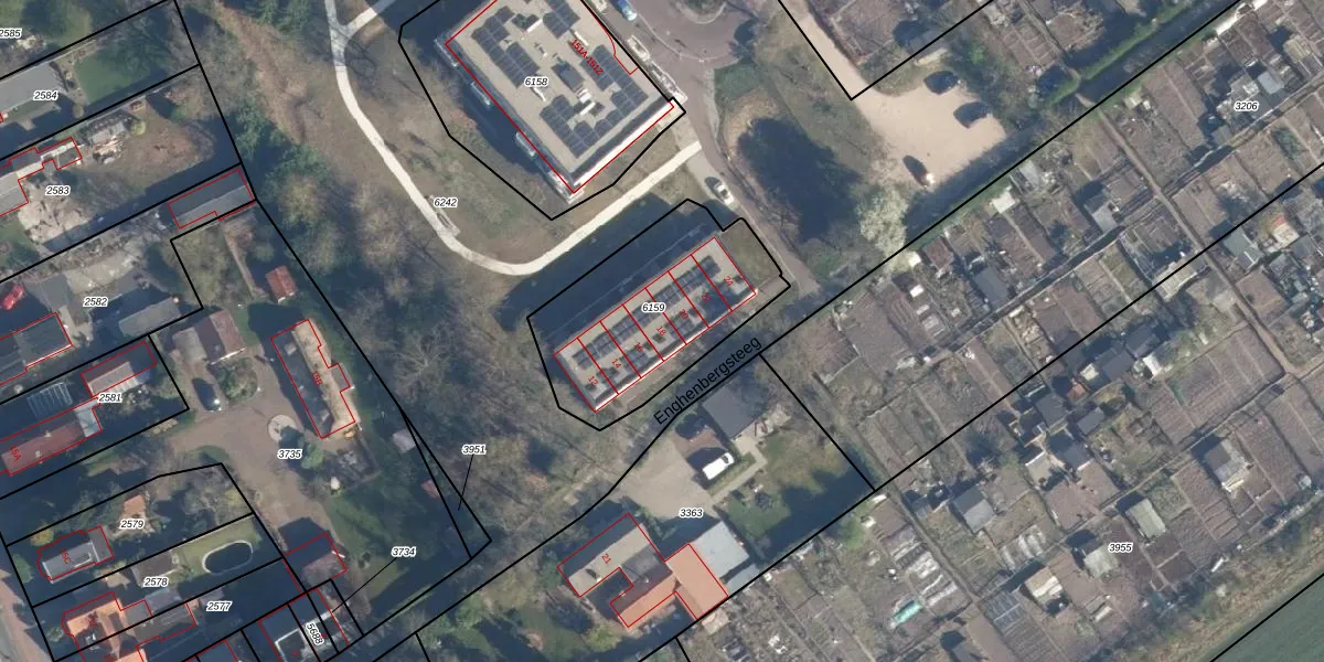 Enghenbergsteeg 18 is gelegen op kadastraal perceel SOE00K6159. Deze kadastrale aanduiding is uniek en wordt gebruikt door het Kadaster om eigendomsrechten en andere zakelijke rechten vast te leggen. Het perceel maakt onderdeel uit van de kadastrale gemeente Soest.