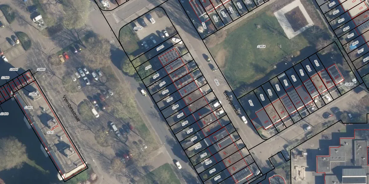 Het perceel waarop Ereprijsstraat 181 staat heeft een oppervlakte van 150 m². Dit is een middelgroot perceel. De perceeloppervlakte wordt geregistreerd door het Kadaster. Gedetailleerde informatie over de maten van dit perceel kunt u vinden in het rapport Kadastrale kaart met maatvoering van Ereprijsstraat 181.
