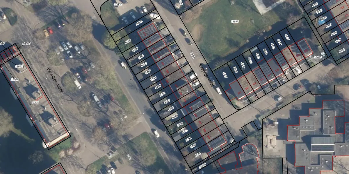 Ereprijsstraat 187 is gelegen op kadastraal perceel SOE00G5786. Deze kadastrale aanduiding is uniek en wordt gebruikt door het Kadaster om eigendomsrechten en andere zakelijke rechten vast te leggen. Het perceel maakt onderdeel uit van de kadastrale gemeente Soest.