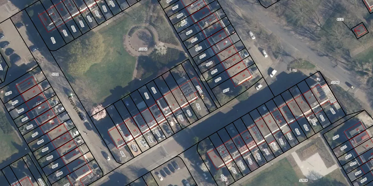 Het perceel waarop Ereprijsstraat 2 staat heeft een oppervlakte van 227 m². Dit is een middelgroot perceel. De perceeloppervlakte wordt geregistreerd door het Kadaster. Gedetailleerde informatie over de maten van dit perceel kunt u vinden in het rapport Kadastrale kaart met maatvoering van Ereprijsstraat 2.