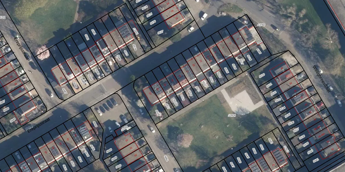 Het perceel waarop Ereprijsstraat 21 staat heeft een oppervlakte van 140 m². Dit is een middelgroot perceel. De perceeloppervlakte wordt geregistreerd door het Kadaster. Gedetailleerde informatie over de maten van dit perceel kunt u vinden in het rapport Kadastrale kaart met maatvoering van Ereprijsstraat 21.