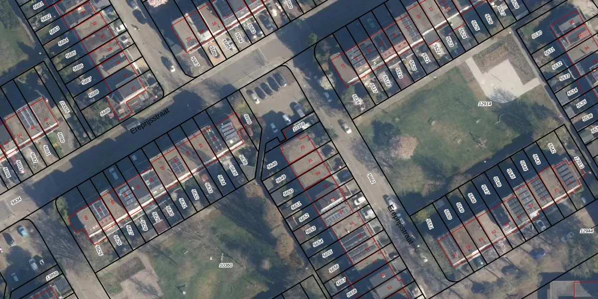 Het perceel waarop Ereprijsstraat 29 staat heeft een oppervlakte van 187 m². Dit is een middelgroot perceel. De perceeloppervlakte wordt geregistreerd door het Kadaster. Gedetailleerde informatie over de maten van dit perceel kunt u vinden in het rapport Kadastrale kaart met maatvoering van Ereprijsstraat 29.