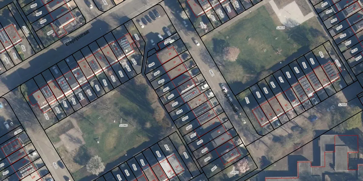 Het perceel waarop Ereprijsstraat 37 staat heeft een oppervlakte van 135 m². Dit is een middelgroot perceel. De perceeloppervlakte wordt geregistreerd door het Kadaster. Gedetailleerde informatie over de maten van dit perceel kunt u vinden in het rapport Kadastrale kaart met maatvoering van Ereprijsstraat 37.