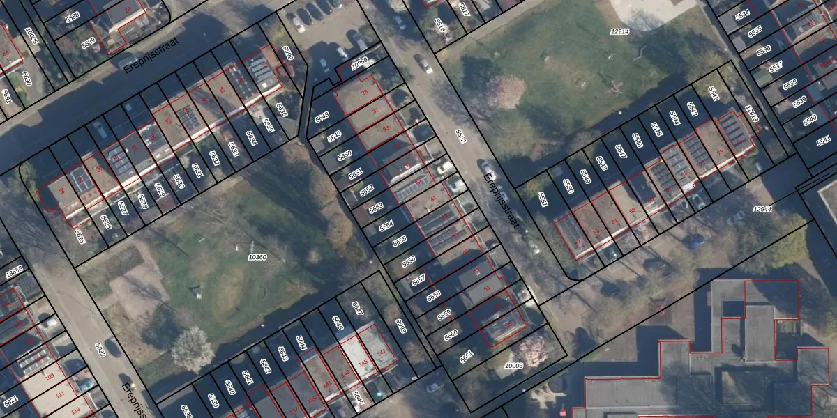 Het perceel waarop Ereprijsstraat 41 staat heeft een oppervlakte van 137 m². Dit is een middelgroot perceel. De perceeloppervlakte wordt geregistreerd door het Kadaster. Gedetailleerde informatie over de maten van dit perceel kunt u vinden in het rapport Kadastrale kaart met maatvoering van Ereprijsstraat 41.