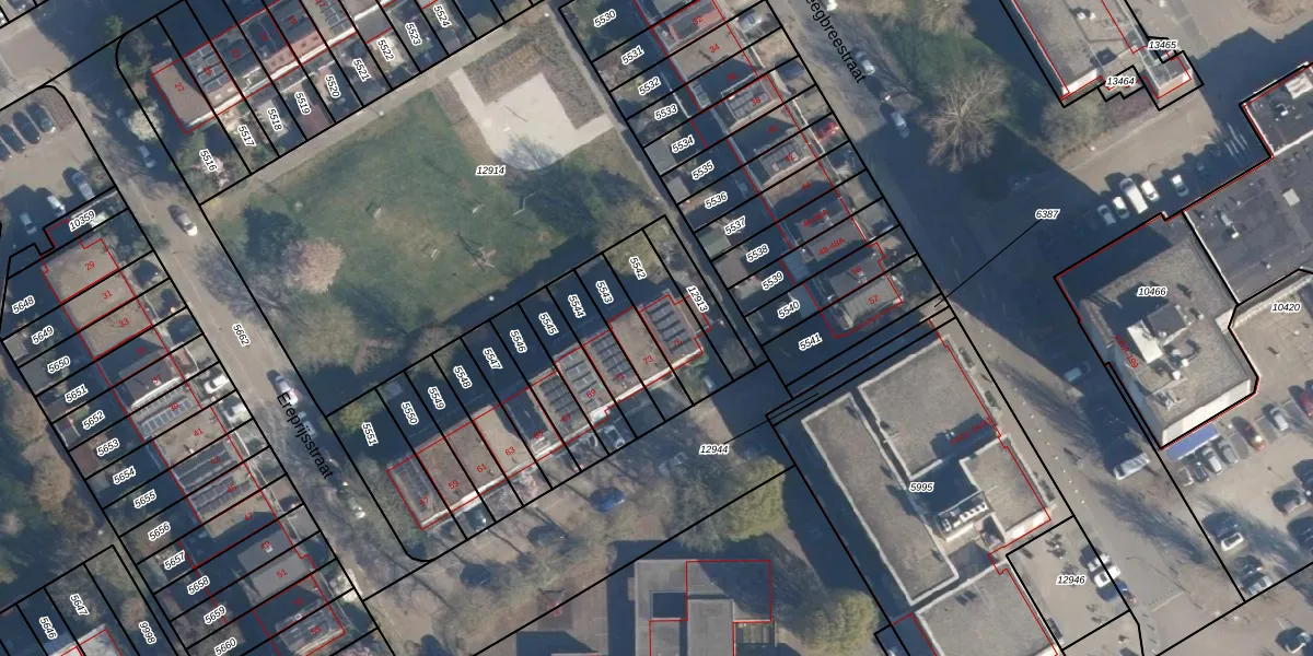 Het perceel waarop Ereprijsstraat 75 staat heeft een oppervlakte van 196 m². Dit is een middelgroot perceel. De perceeloppervlakte wordt geregistreerd door het Kadaster. Gedetailleerde informatie over de maten van dit perceel kunt u vinden in het rapport Kadastrale kaart met maatvoering van Ereprijsstraat 75.
