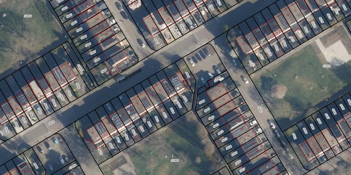 Het perceel waarop Ereprijsstraat 77 staat heeft een oppervlakte van 202 m². Dit is een middelgroot perceel. De perceeloppervlakte wordt geregistreerd door het Kadaster. Gedetailleerde informatie over de maten van dit perceel kunt u vinden in het rapport Kadastrale kaart met maatvoering van Ereprijsstraat 77.