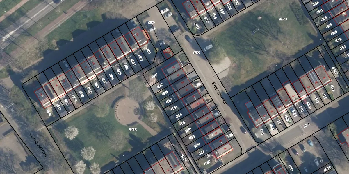 Het perceel waarop Ereprijsstraat 84 staat heeft een oppervlakte van 135 m². Dit is een middelgroot perceel. De perceeloppervlakte wordt geregistreerd door het Kadaster. Gedetailleerde informatie over de maten van dit perceel kunt u vinden in het rapport Kadastrale kaart met maatvoering van Ereprijsstraat 84.