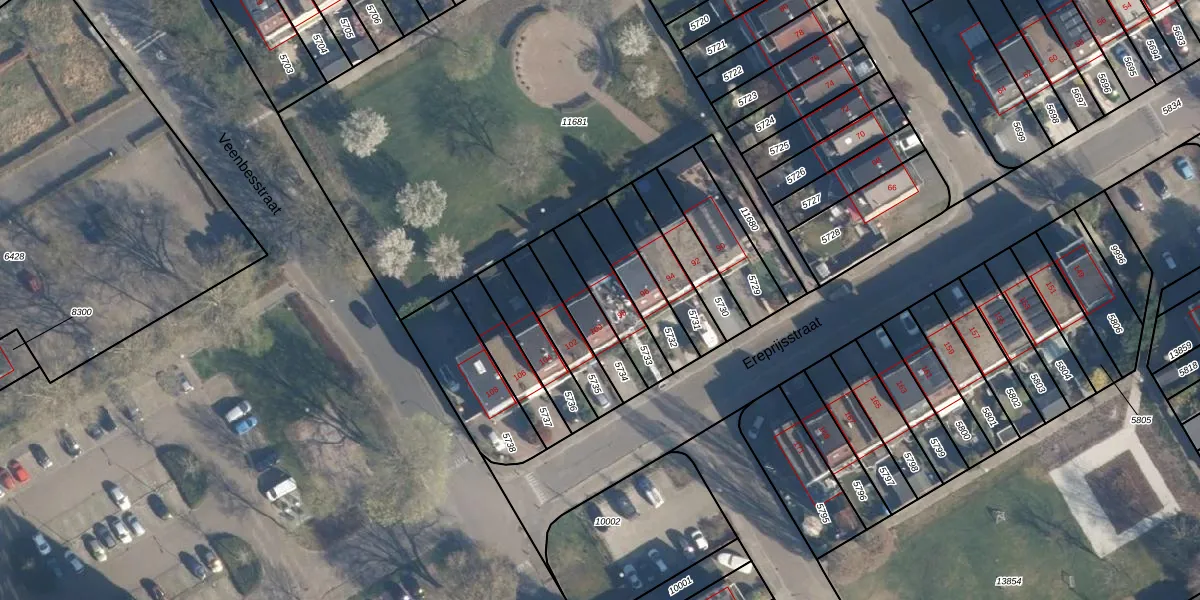 Het perceel waarop Ereprijsstraat 98 staat heeft een oppervlakte van 158 m². Dit is een middelgroot perceel. De perceeloppervlakte wordt geregistreerd door het Kadaster. Gedetailleerde informatie over de maten van dit perceel kunt u vinden in het rapport Kadastrale kaart met maatvoering van Ereprijsstraat 98.
