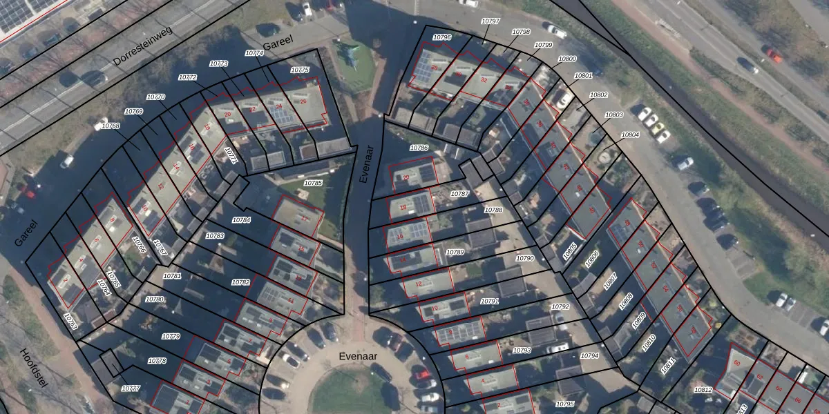 Het perceel waarop Evenaar 18 staat heeft een oppervlakte van 224 m². Dit is een middelgroot perceel. De perceeloppervlakte wordt geregistreerd door het Kadaster. Gedetailleerde informatie over de maten van dit perceel kunt u vinden in het rapport Kadastrale kaart met maatvoering van Evenaar 18.
