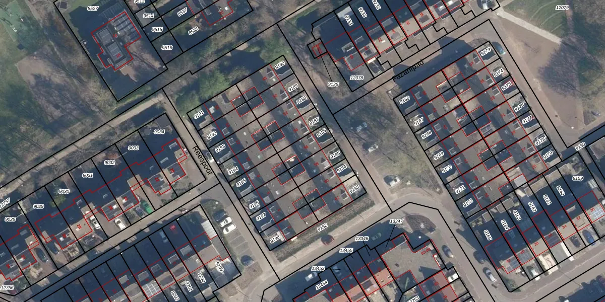 Gebruik de zoekbalk of klik op een perceel voor informatie over de adressen binnen dit perceel.