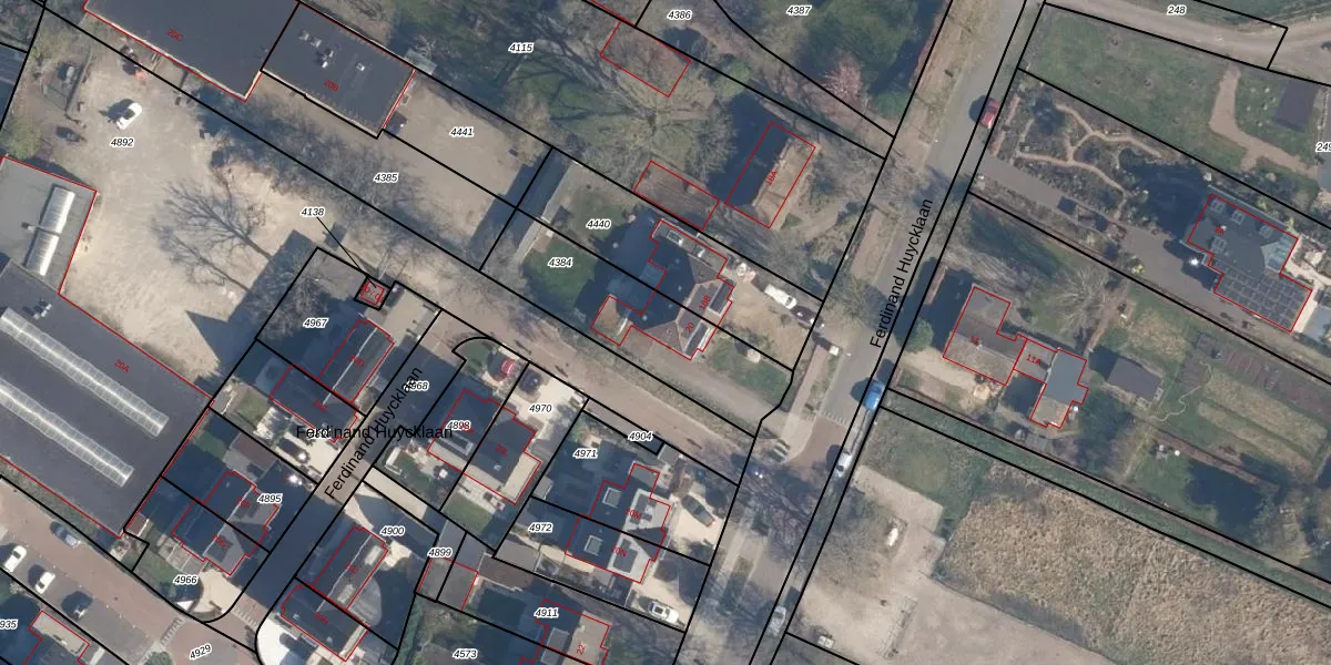 Ferdinand Huycklaan 20 is gelegen op kadastraal perceel SOE00C4384. Deze kadastrale aanduiding is uniek en wordt gebruikt door het Kadaster om eigendomsrechten en andere zakelijke rechten vast te leggen. Het perceel maakt onderdeel uit van de kadastrale gemeente Soest.
