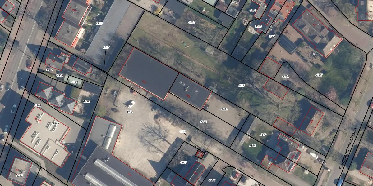 Ferdinand Huycklaan 20-B is gelegen op kadastraal perceel SOE00C4441. Deze kadastrale aanduiding is uniek en wordt gebruikt door het Kadaster om eigendomsrechten en andere zakelijke rechten vast te leggen. Het perceel maakt onderdeel uit van de kadastrale gemeente Soest.