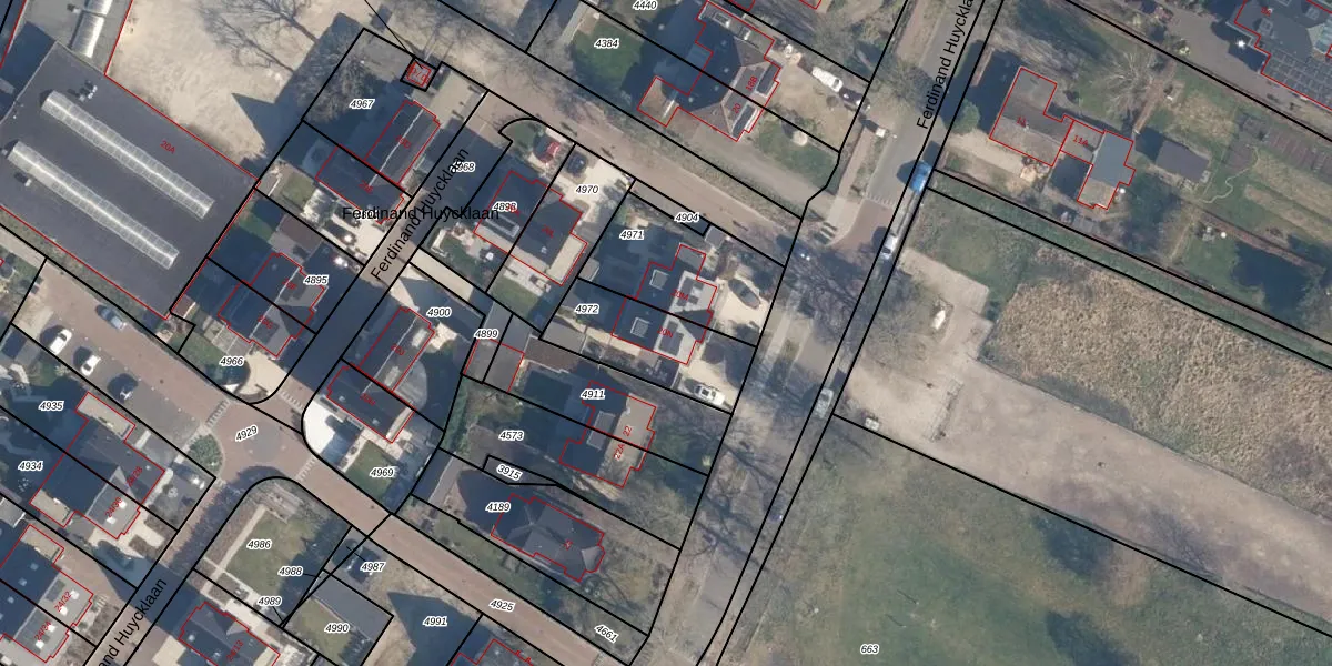 Ferdinand Huycklaan 20-N is gelegen op kadastraal perceel SOE00C4972. Deze kadastrale aanduiding is uniek en wordt gebruikt door het Kadaster om eigendomsrechten en andere zakelijke rechten vast te leggen. Het perceel maakt onderdeel uit van de kadastrale gemeente Soest.