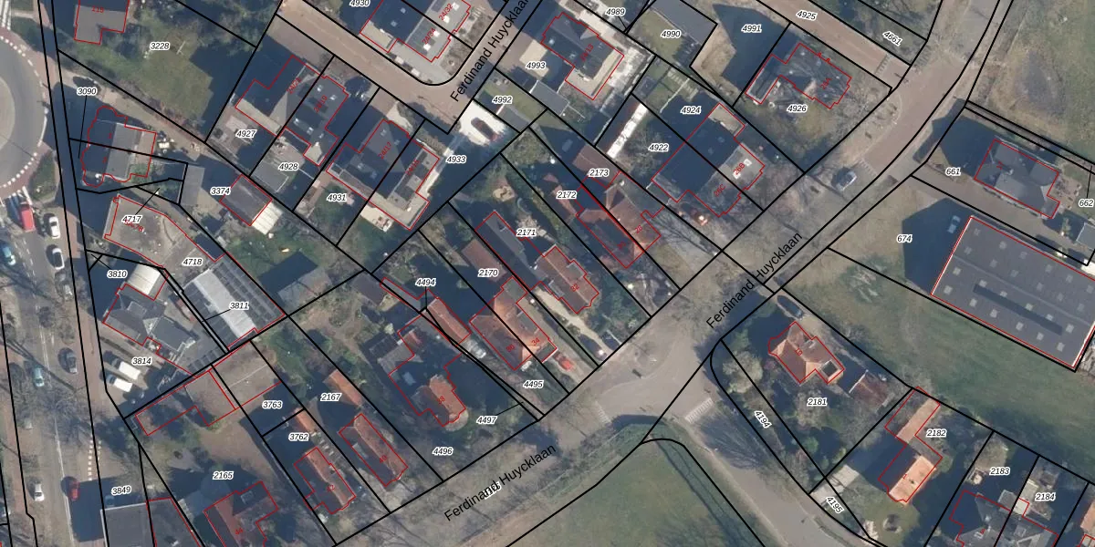 Het perceel waarop Ferdinand Huycklaan 32 staat heeft een oppervlakte van 543 m². Dit is een groot perceel. De perceeloppervlakte wordt geregistreerd door het Kadaster. Gedetailleerde informatie over de maten van dit perceel kunt u vinden in het rapport Kadastrale kaart met maatvoering van Ferdinand Huycklaan 32.
