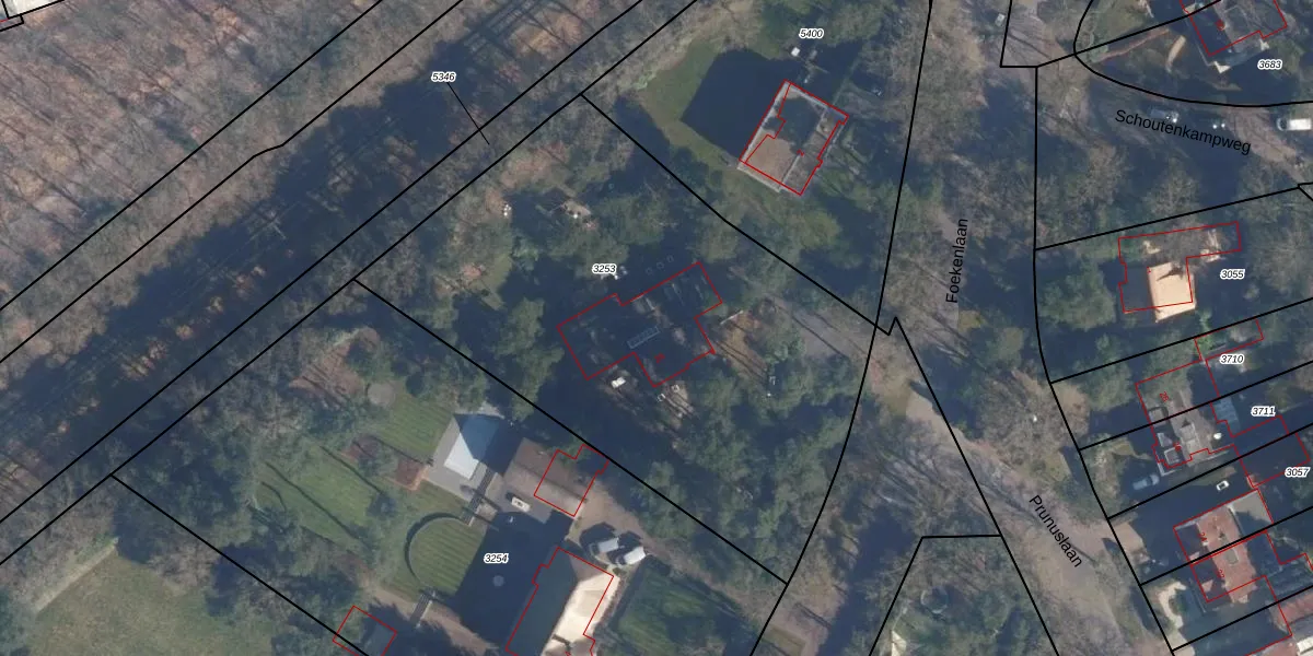 Het perceel waarop Foekenlaan 2-A staat heeft een oppervlakte van 2872 m². Dit is een zeer groot perceel. De perceeloppervlakte wordt geregistreerd door het Kadaster. Gedetailleerde informatie over de maten van dit perceel kunt u vinden in het rapport Kadastrale kaart met maatvoering van Foekenlaan 2-A.