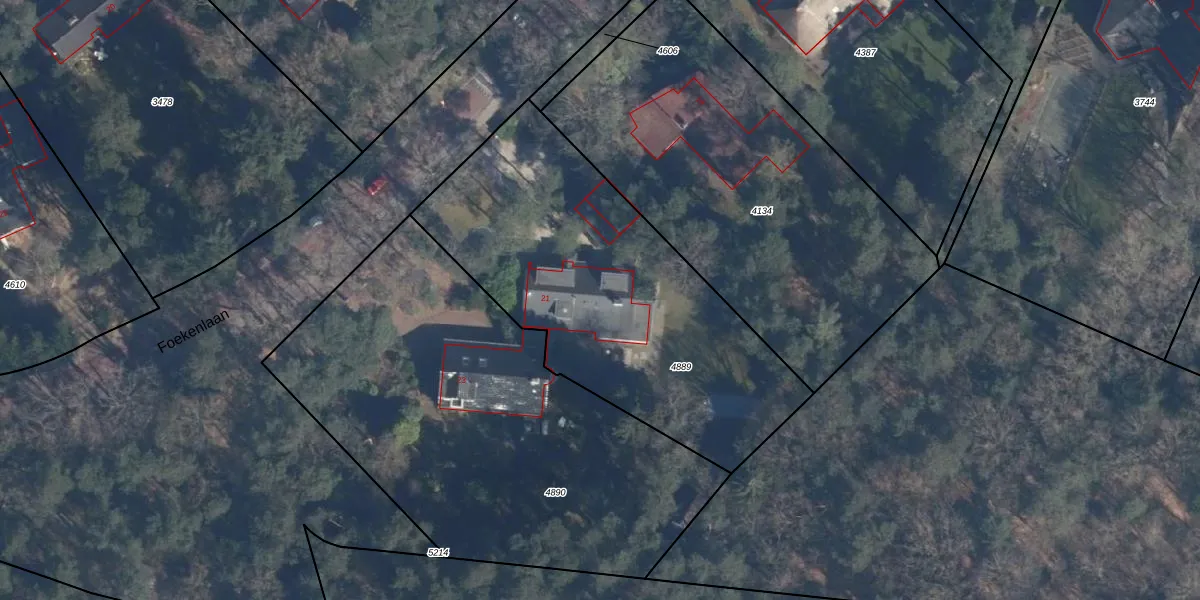 Foekenlaan 21 is gelegen op kadastraal perceel SOE00D4889. Deze kadastrale aanduiding is uniek en wordt gebruikt door het Kadaster om eigendomsrechten en andere zakelijke rechten vast te leggen. Het perceel maakt onderdeel uit van de kadastrale gemeente Soest.