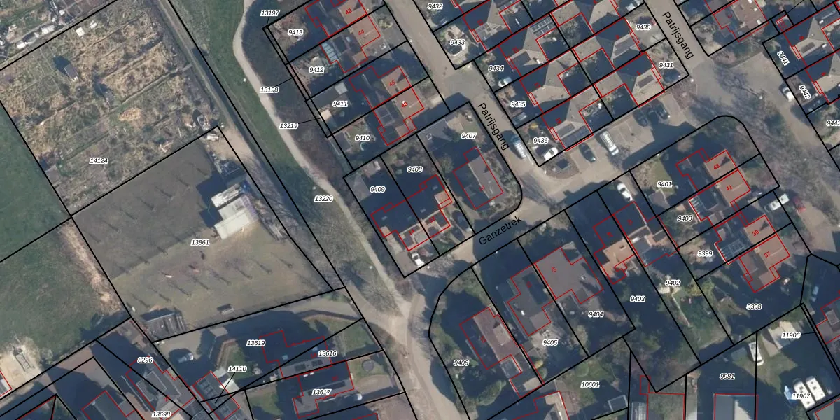 Ganzetrek 12 is gelegen op kadastraal perceel SOE00G9408. Deze kadastrale aanduiding is uniek en wordt gebruikt door het Kadaster om eigendomsrechten en andere zakelijke rechten vast te leggen. Het perceel maakt onderdeel uit van de kadastrale gemeente Soest.