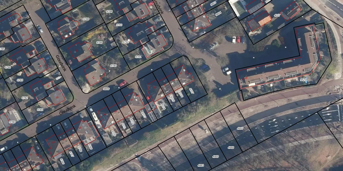 Goudvink 49 is gelegen op kadastraal perceel SOE00G9776. Deze kadastrale aanduiding is uniek en wordt gebruikt door het Kadaster om eigendomsrechten en andere zakelijke rechten vast te leggen. Het perceel maakt onderdeel uit van de kadastrale gemeente Soest.